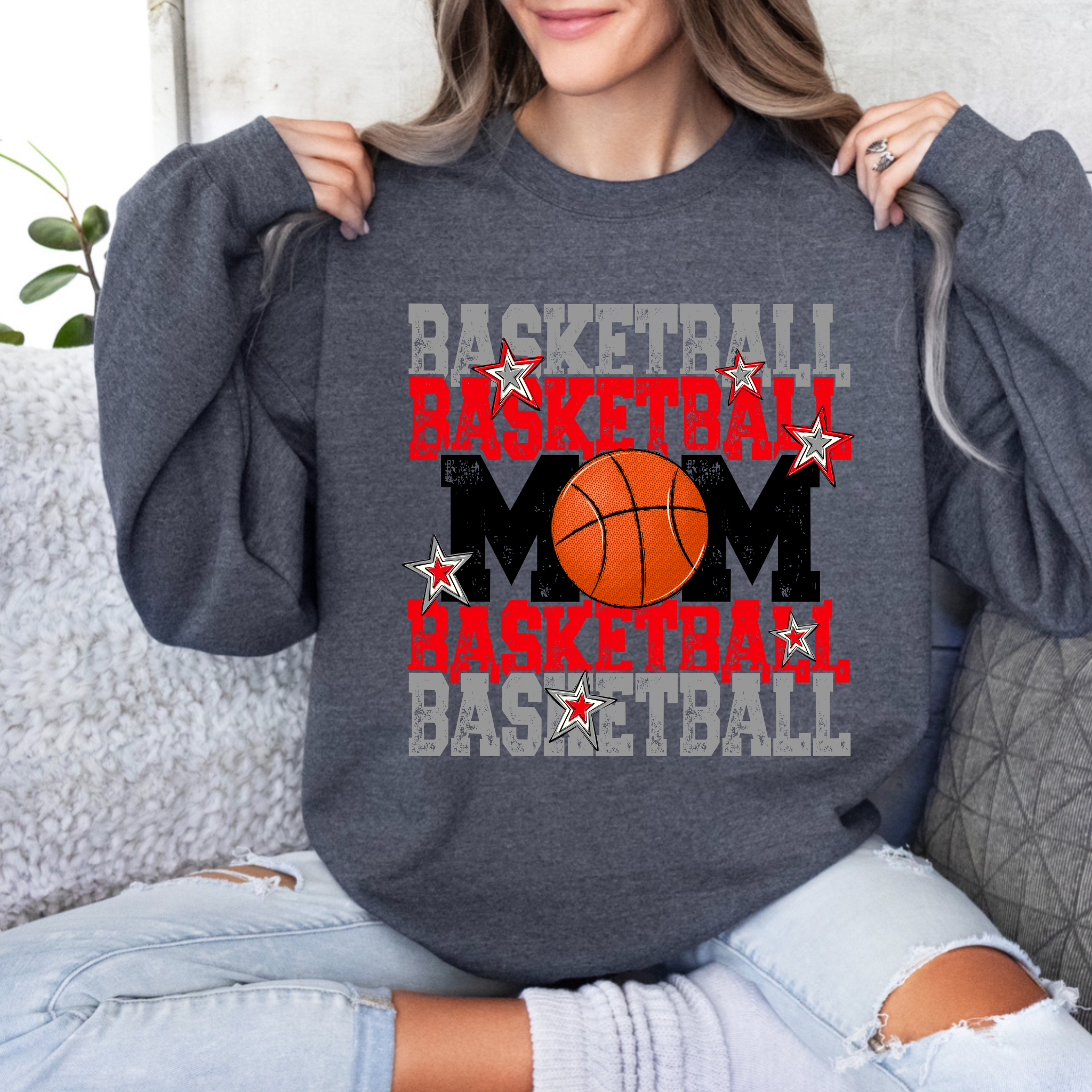 Grey and Red Basketball Mom Adult Shirt
