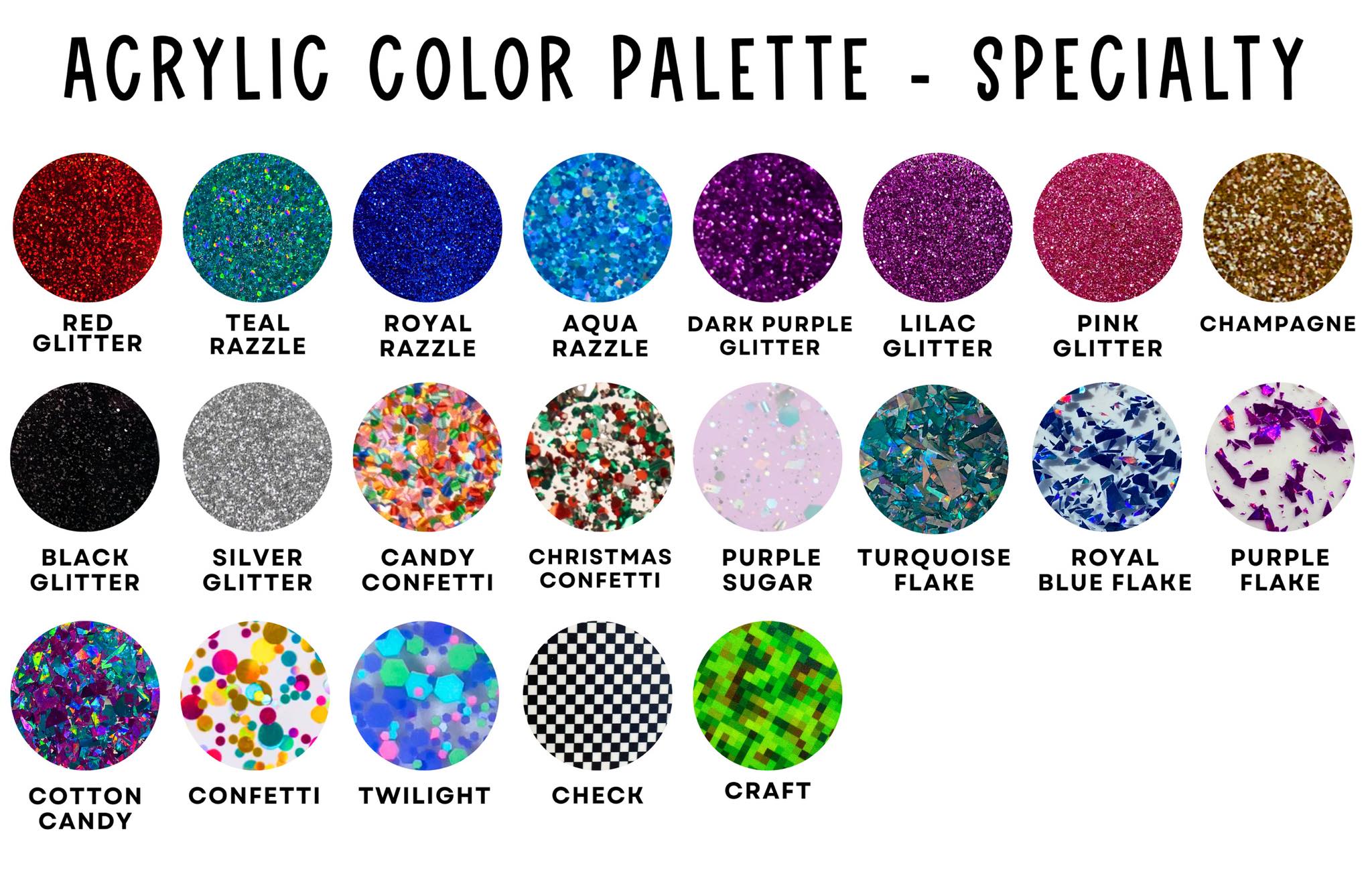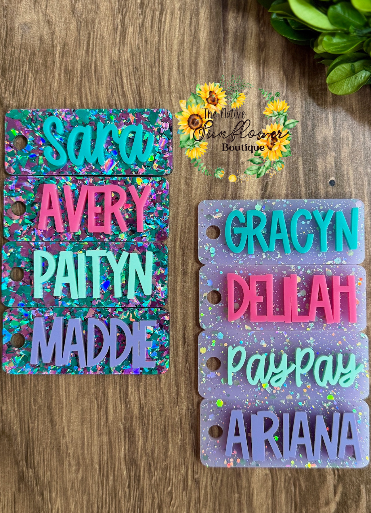 Each charm is made of double layer acrylic and comes in a one of two fonts: script or print.