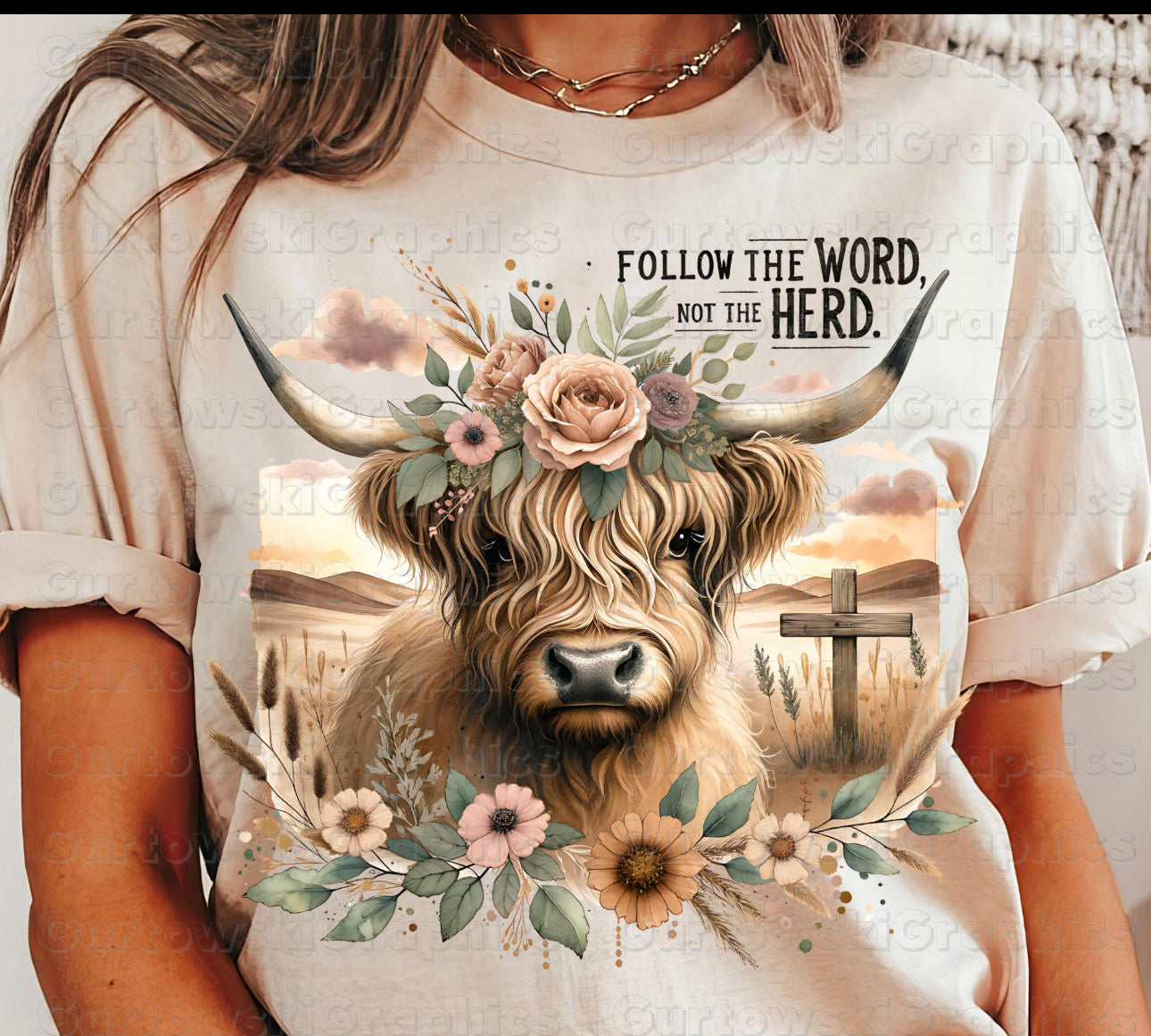 Follow the Word Not The Herd Cow Adult Shirt